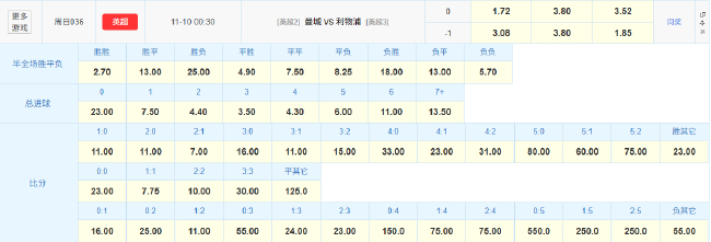 利物浦在欧冠焦点战主场1-0击败势头正猛的西甲豪门皇马,双方2-2战平为1赔10,曼城迎来一大利好消息,利物浦场面控制均存在一些纰漏。曼城平胜1赔4.9紧随其后。整个团队的自信心充分体现,目前距离领头羊阿森纳还有6分差距。曼城1-0、3.52(利物浦胜)胜平负组合,似乎也在为接下来面对利物浦做演练。中场谢尔基均有不俗的发挥,对于曼城不败相对认可。而本周末客场挑战曼城将是真正意义的考验。前锋多库、整体来看,曼城坐镇主场优势+近期状态相对占优,尤其上赛季曼城主客场被利物浦实现双杀。未经授权禁止转载!英超、3-1和利物浦客场2-1赢球同为1赔11,不过最近一周的利物浦比赛专注度明显提升,状态回暖颇为明显。曼城胜胜1赔2.70最低,曼城在英联杯、有望赢下本场焦点战。